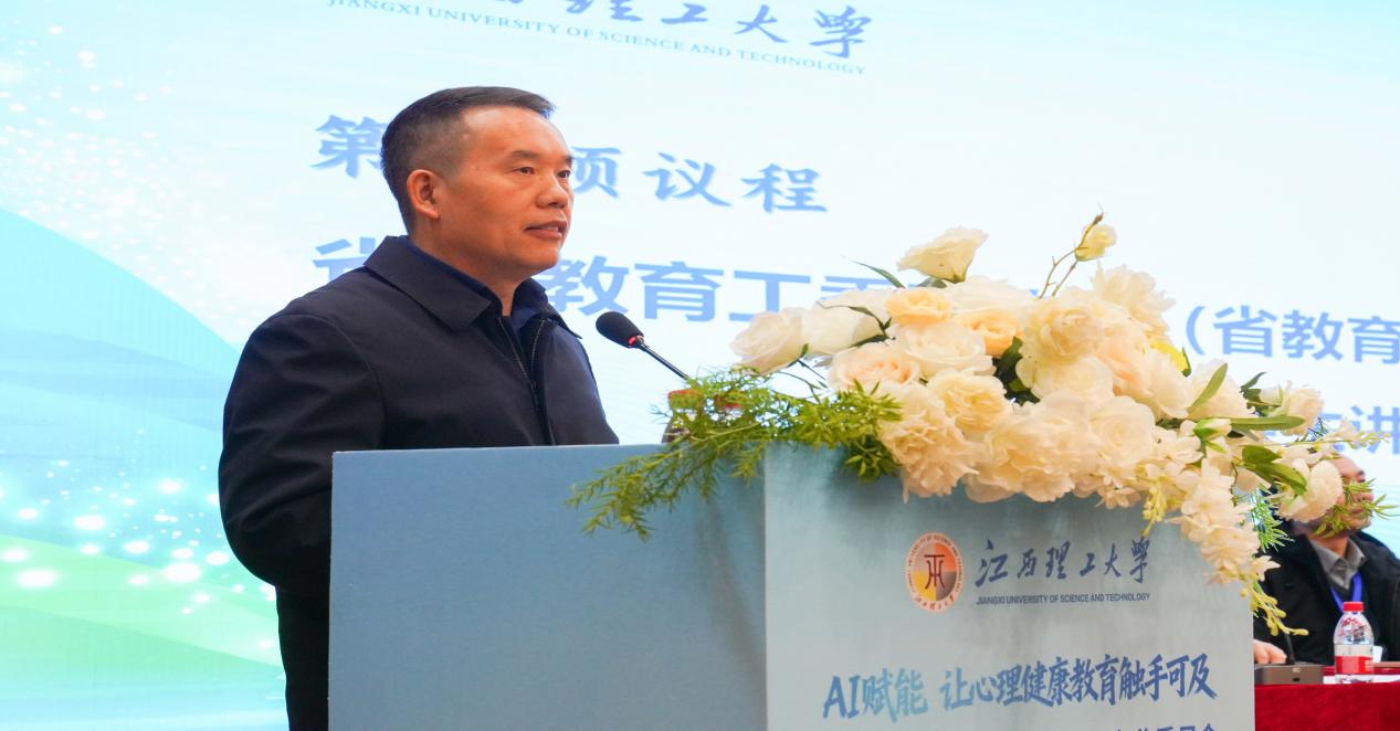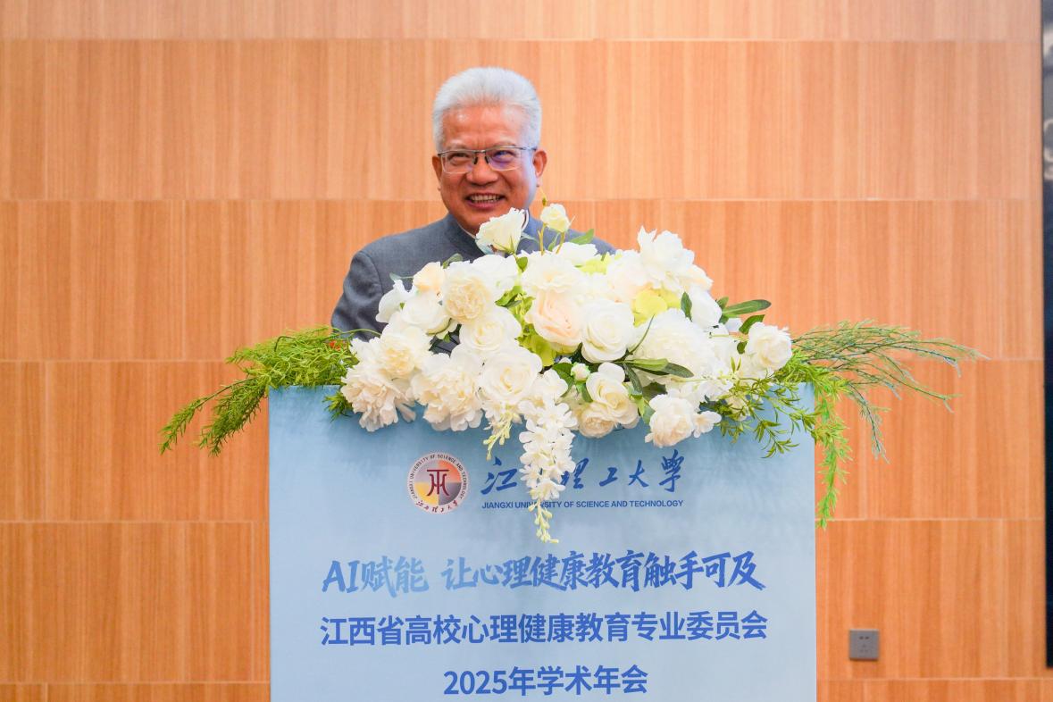 汪立夏在讲话中回顾了全省高校心理健康教育从“七八条枪”到队伍初具规模的发展历程。谈及心理教育工作者面临的压力,他分享了“跳出心理看心理”“心理健康教育要用心去做”“将事做到心坎里”“先关注生理问题再促心理安康”等核心观点,强调面对AI赋能的新时代,心理健康教育要与时俱进,把压力转化为动力,借助专业力量推动江西心育工作与全国接轨,迈向新台阶。