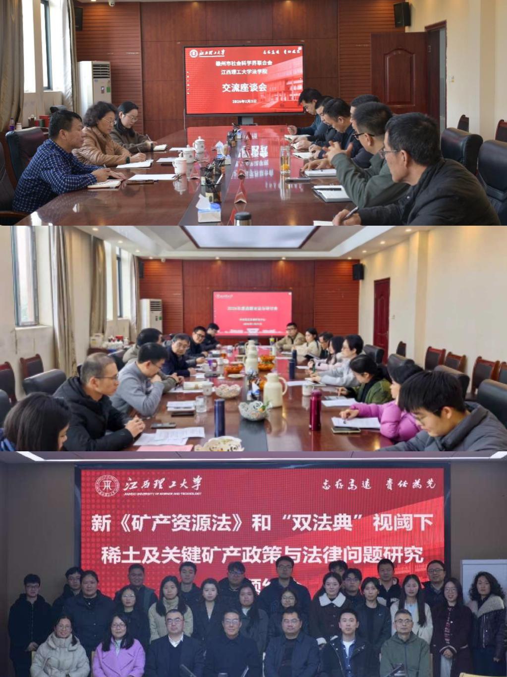 法学院立足学科特色,打造多层次学术交流平台。1月30日,学院举办新《中华人民共和国矿产资源法》与“双法典”视阈下稀土及关键矿产政策法律专题研讨会,师生围绕矿产资源损害赔偿、全生命周期监管、中外制度比较、绿色开采规制等议题深入研讨,为行业法治建设建言献策;1月31日,学院红色法治团队召开选题论证会,邀请校内外专家为国家社科基金申报选题“把脉问诊”,聚焦苏区法制史料挖掘、红色资源思政融入等方向凝练研究重点。2月3日,学院与赣州市社会科学界联合会座谈,就红色法治宣传、重大课题合作、基地建设等校地协作事项达成共识,推动学术研究与地方需求深度对接。