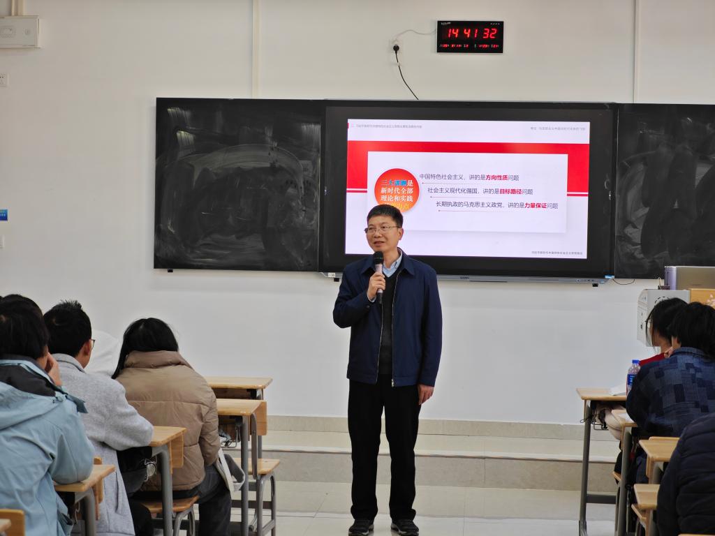 副书记徐志峰在三江校区听了王邦辉老师上的《毛泽东思想和中国特色社会主义理论体系概论》课,他教导学生关注国内外形势,加强理论武装掌握透过现象看本质的本领,进一步增强爱党爱国情怀,并与授课老师进行了交流。