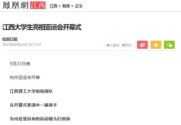 《凤凰网》:江西大学生亮相亚运会开幕式