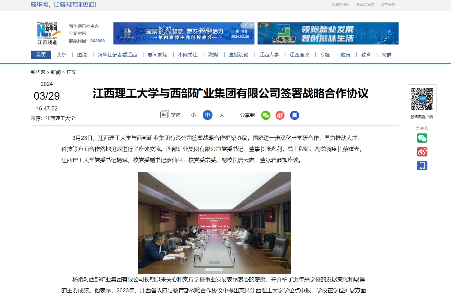与西部矿业集团有限公司签署战略合作框架协议,围绕进一步深化产学研合作,着力推动人才、科技等方面合作落地见效进行了座谈交流。西部矿业集团有限公司党委书记、董事长张永利,总工程师、副总调度长蔡曙光,六合彩开奖