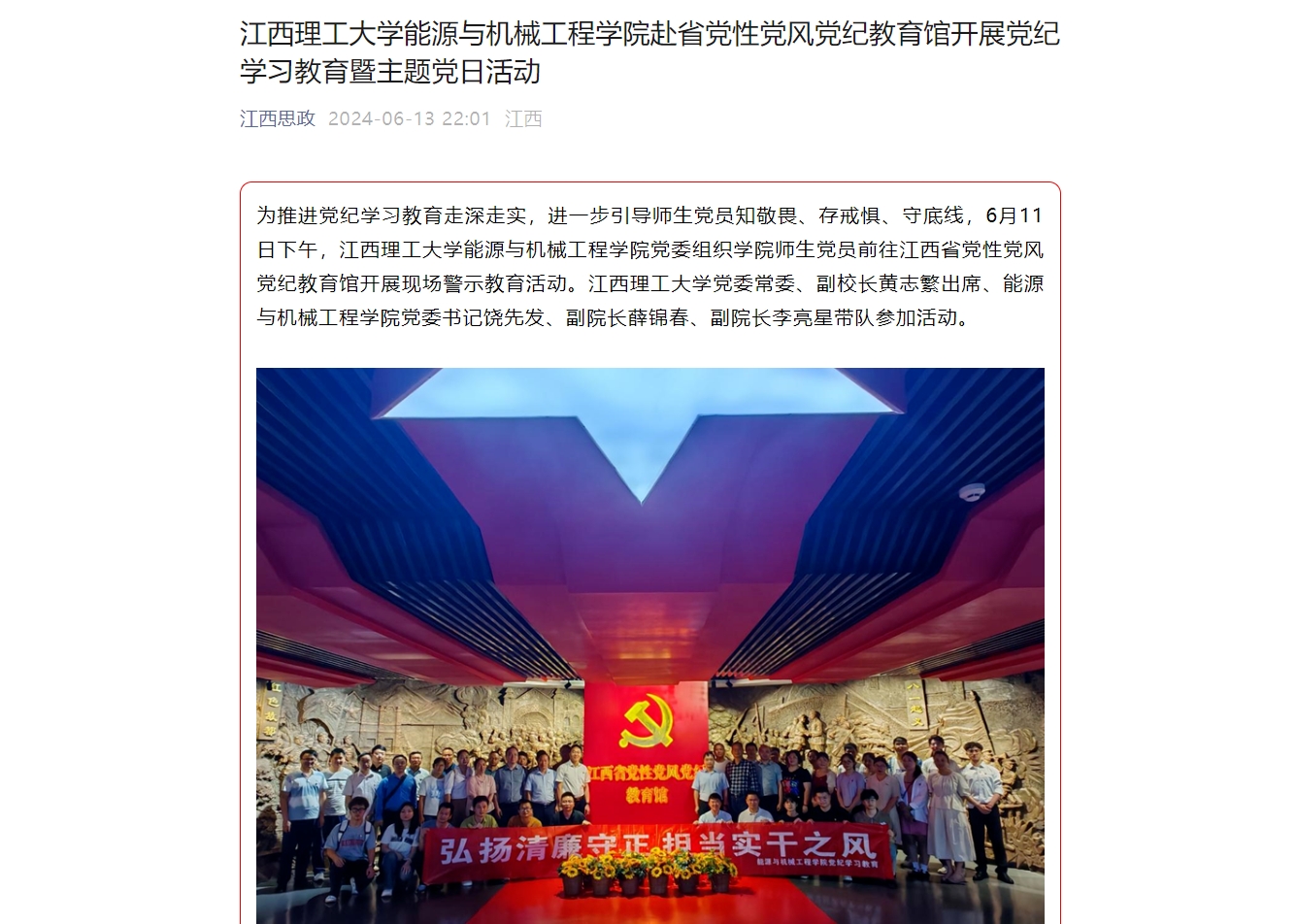 能源与机械工程学院党委组织学院师生党员前往江西省党性党风党纪教育馆开展现场警示教育活动。六合彩开奖