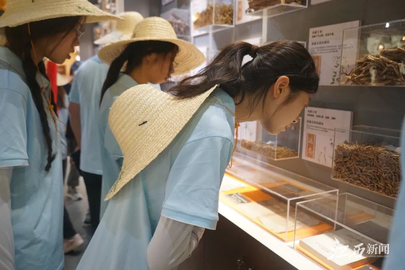 在江西玉峡药业集团党员的带领和介绍下,实践队队员系统掌握到了中医药的产品群、技术群、人才群,了解到了国药发展的物质基础、炮制的主要流派、各类中药的药用价值以及依托中医药发展起来的新型药物和保健品。峡江县的中医药产业发展势头强劲。据悉,当地已形成了以中医药为核心的全产业链企业集群,涵盖了中药材规范化种植、科研、加工、销售、中药饮片生产销售、药品批发、医疗器械销售以及大健康食品生产等多个领域,先后引进培育广鸿大健康、普正药业、玉峡药业等龙头企业5家,全县中药材产业综合产值突破3.5亿元。
