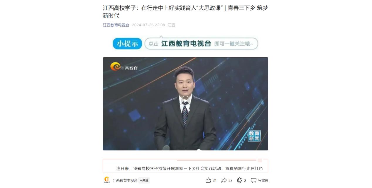 《江西教育电视台》:江西高校学子:在行走上好实践育人“大思政课”:青春三下乡 筑梦新时代