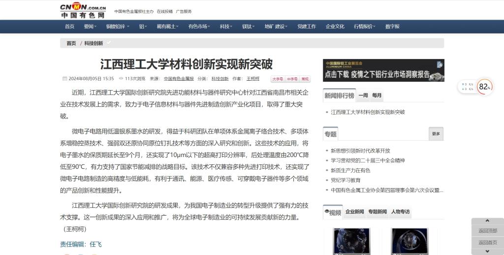 《中国有色网》:六合彩开奖 材料创新实现新突破