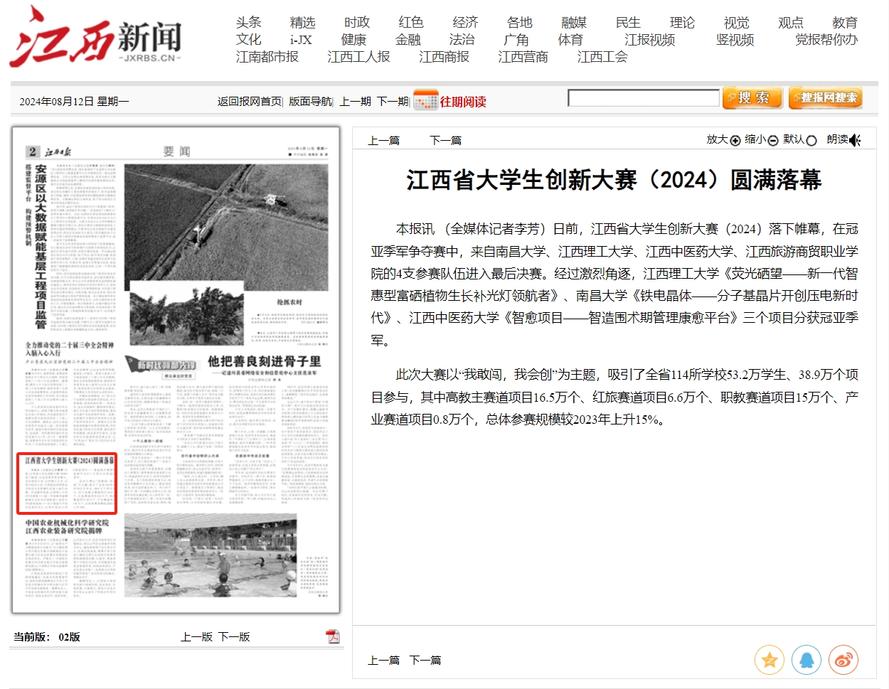 《江西日报》:江西省大学生创新大赛(2024)圆满落幕