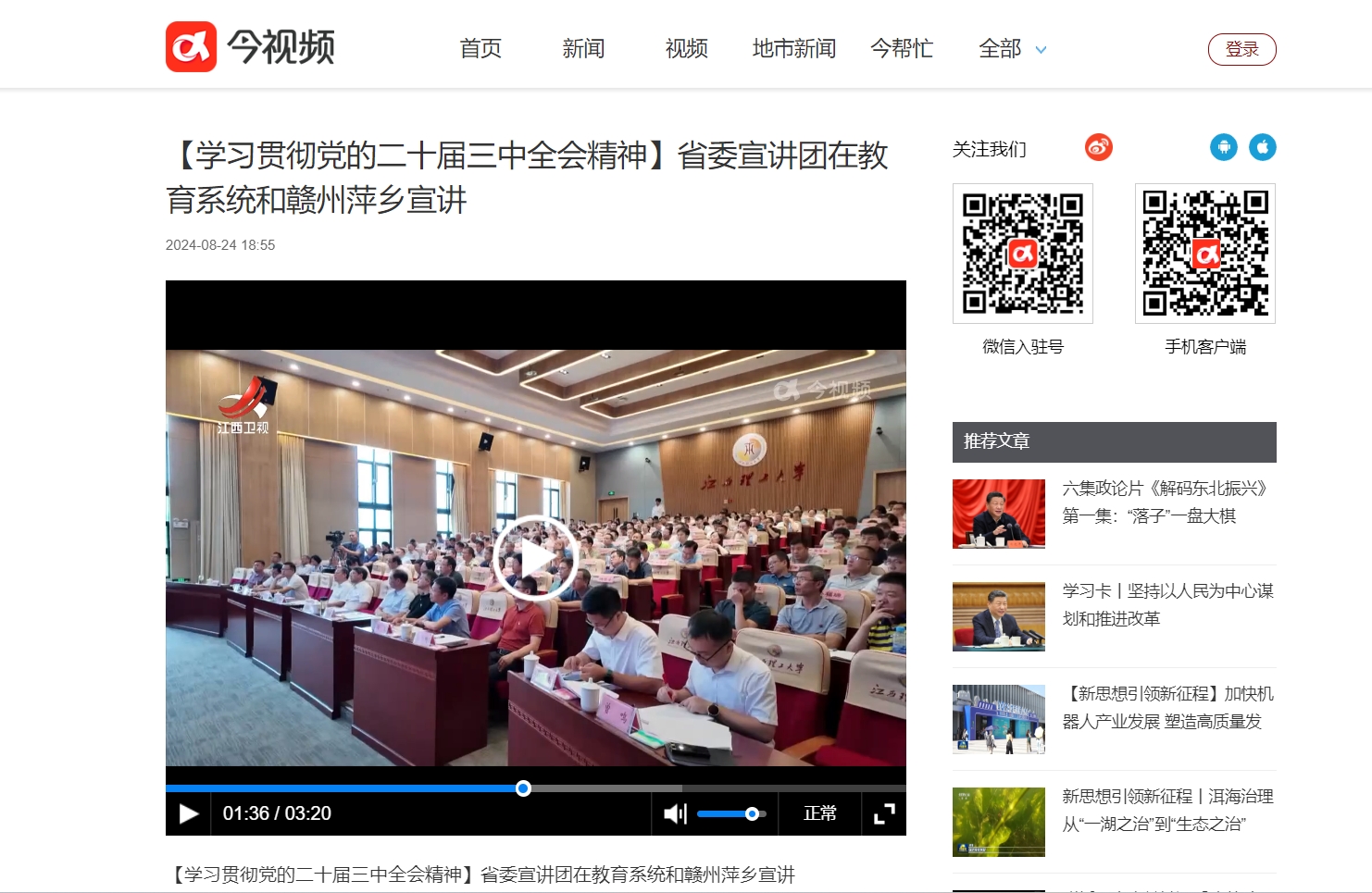 《江西广播电视台客户端》:【学习贯彻党的二十届三中全会精神】省委宣讲团在教育系统和赣州萍乡宣讲