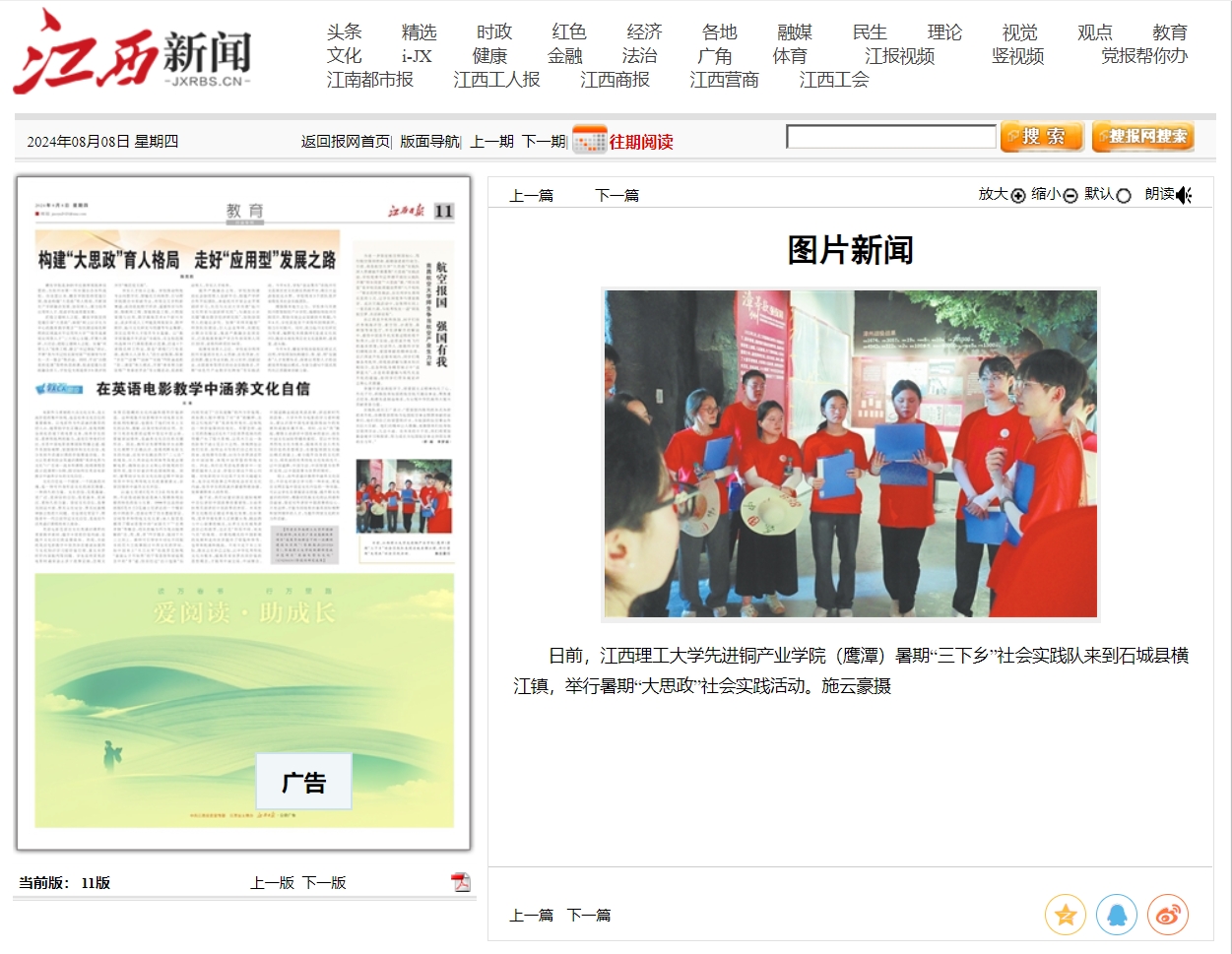 《江西日报》:六合彩开奖 先进铜产业学院(鹰潭)暑期“三下乡”社会实践队举行暑期“大思政”社会实践活动