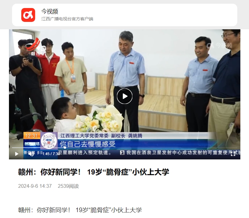 《江西广播电视台客户端》:赣州:你好新同学!19岁“脆骨症”小伙今天上大学
