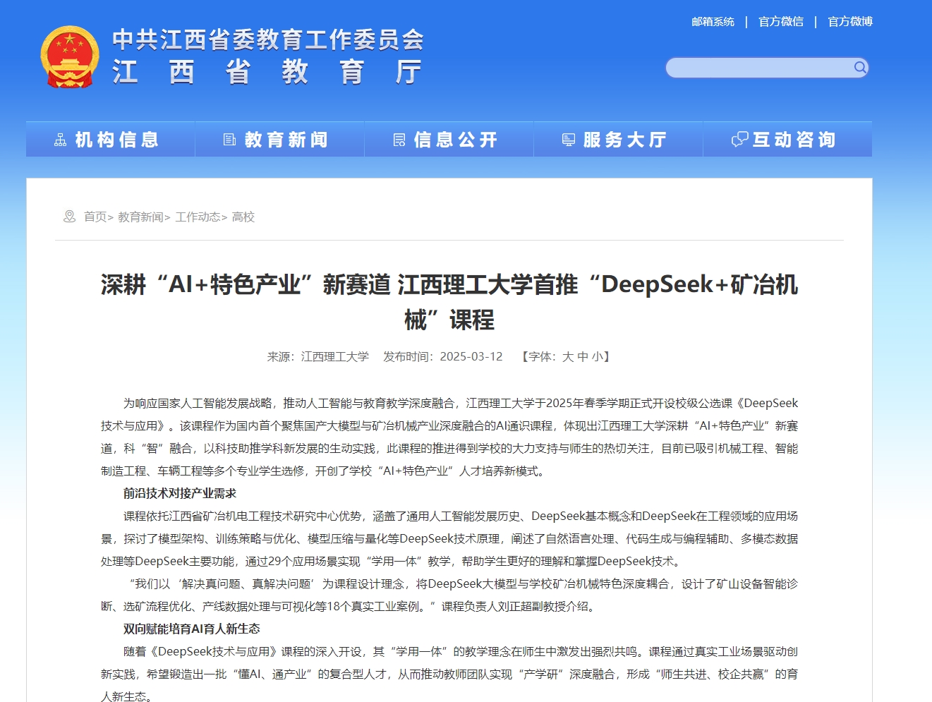 于2025年春季学期正式开设校级公选课《DeepSeek技术与应用》。该课程作为国内首个聚焦国产大模型与矿冶机械产业深度融合的AI通识课程,体现出六合彩开奖