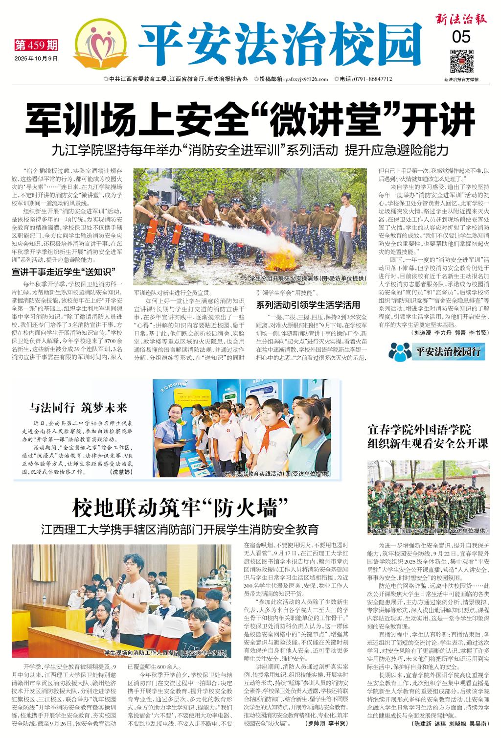 保卫处特别邀请赣州市章贡区消防救援大队、赣州经济技术开发区消防救援大队,分别走进学校红旗校区、三江校区,联合举办“筑牢校园安全防线”开学季消防安全教育暨实操训练,校地携手开展学生安全教育、夯实校园安全防线。截至9月26日,该安全教育活动已覆盖师生600余人。