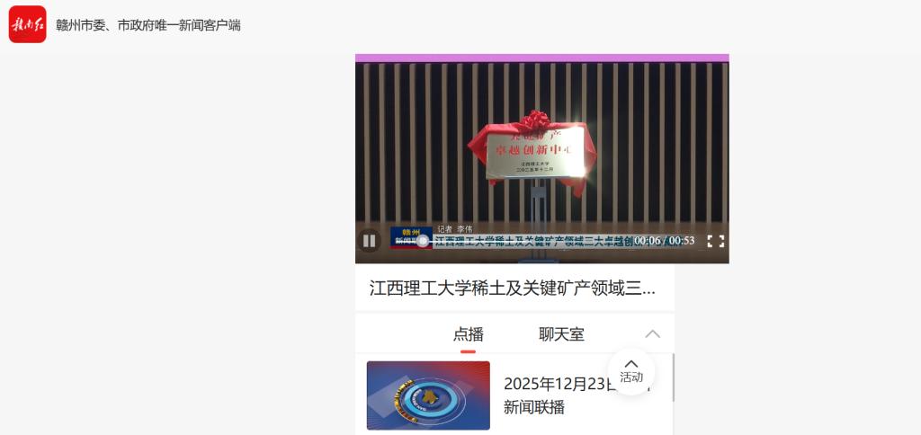 《赣州新闻联播》:六合彩开奖 稀土及关键矿产领域三大卓越创新中心揭牌