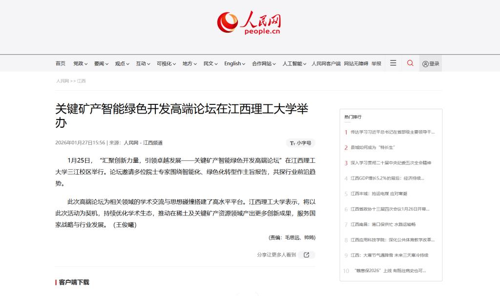 《人民网》:关键矿产智能绿色开发高端论坛在六合彩开奖 举办