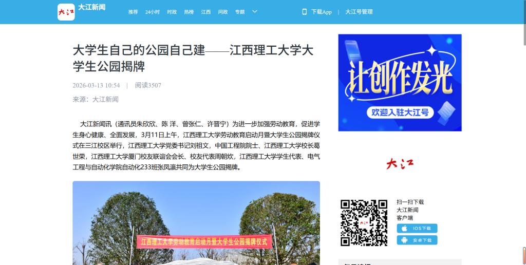 劳动教育启动月暨大学生公园揭牌仪式在三江校区举行,六合彩开奖