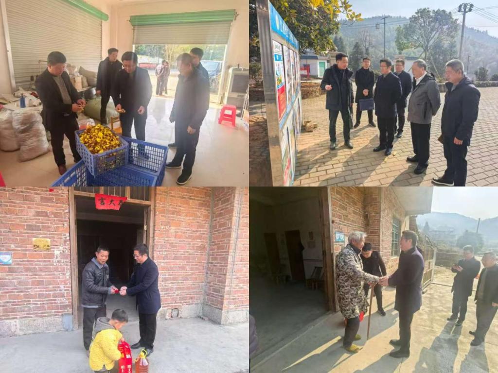 随后,徐志峰一行深入第三次反“围剿”祝捷大会旧址、崇贤乡茶旅小镇、贺堂村新时代文明实践站以及崇义村扶贫车间等开展实地调研,对驻村工作队员和帮扶村“三类户”代表进行了走访慰问。每到一处,都详细了解“三类户”的家庭状况、收入来源及面临的实际困难,勉励他们坚定信心,充分利用政策扶持,结合自身努力,迈向更加幸福美满的生活并送上新春祝福。