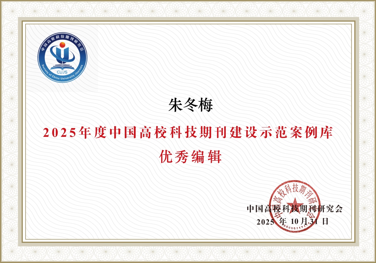 另悉,11月6日至9日于西安举办的中国高校科技期刊研究会第29次年会上,《有色金属科学与工程》再获两项荣誉。经过征集、推荐、审核及编校质量抽查等多轮程序,《有色金属科学与工程》编辑团队获评“2025年度中国高校科技期刊建设示范案例库·优秀团队”,编辑部朱冬梅同志入选“优秀编辑”。