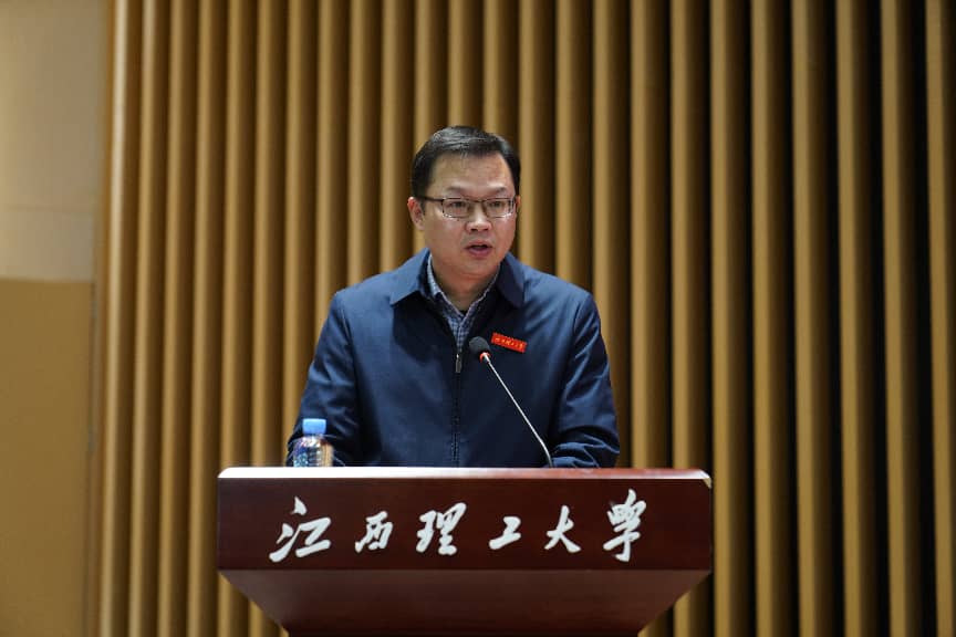 葛世荣向获得表彰的先进集体和个人表示热烈祝贺,希望大家保持谦虚谨慎、不骄不躁的态度,再接再厉、乘势而上,争取取得更加优异的成绩。他强调,全体同学要深入学习贯彻习近平新时代中国特色社会主义思想,积极践行社会主义核心价值观,努力成长为能担当民族复兴大任的时代新人,为学校创建“稀土及关键矿产领域世界一流大学”贡献青春力量。他对同学们提出了三点期望:一是传承红色基因,做胸怀家国的江理人,在时代浪潮中把握成长机遇,在现实挑战中磨砺意志品格;二是筑牢有色根基,做笃志前行的江理人,在科技竞赛中勇攀高峰,在多元舞台上绽放光彩;三是争创出色成果,做拔尖创新的江理人,用勤劳的双手和诚实的劳动争创一流佳绩、拥抱美好生活。