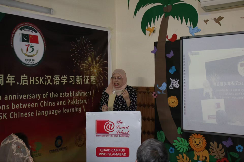 巴基斯坦研究中心与巴基斯坦华文教育协会联合主办的“庆祝中巴建交75周年,启HSK汉语新征程”主题活动在巴基斯坦首都伊斯兰堡举行。中巴两国教育界代表跨越山海,通过线上线下相结合的方式齐聚一堂,以语言为桥,共叙铁杆情谊,共同描绘汉语教育发展与人文交流的新图景。
