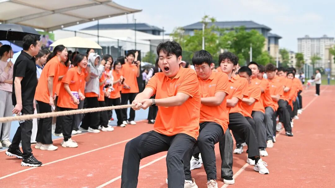 开幕式上,江理啦啦操队以喜庆欢快的舞蹈点燃现场,现场掌声雷动、气氛热烈。热身及集体带操环节结束后,趣味运动会参赛选手有序前往田径场开展比拼:在“同炉共进”项目中,队员们脚踝相绑、手臂相挽,50米的赛道上,每一步都踏出了团结的节拍;在“钨金战鼓”的鼓点中,同学们各自执掌一方鼓的朝向,每一次的鼓鸣都是团队的力量;在“矿脉齐跃”的飞跃中,同学们齐喊口号,必胜的决心在一次次同频的跳跃中激增;在“金石投趣”的瞄准中,闪耀着运动员间信任的力量“金石”;在“稀土争锋”项目中,运动员们紧握绳索、全力后拉,绳索中间的标记来回拉锯,每一次偏移都牵动着全场观众的心。
