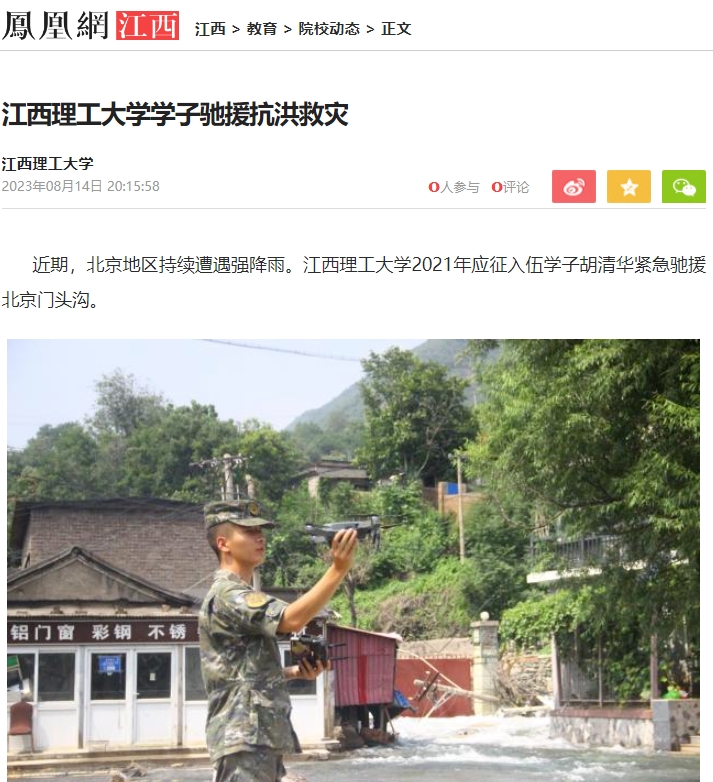 胡清华即将在9月1日完成兵役返校学习。在抗洪抢险一线,他深入灾区、不惧危险。他说:“我是江理走出的兵,一直谨记‘志存高远,责任为先’的校训。”(文/陈烨 何田)
