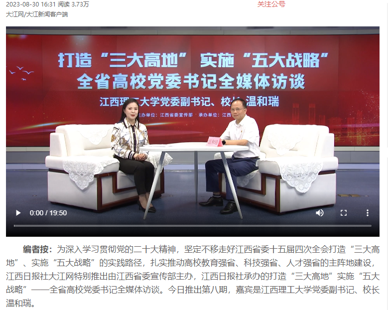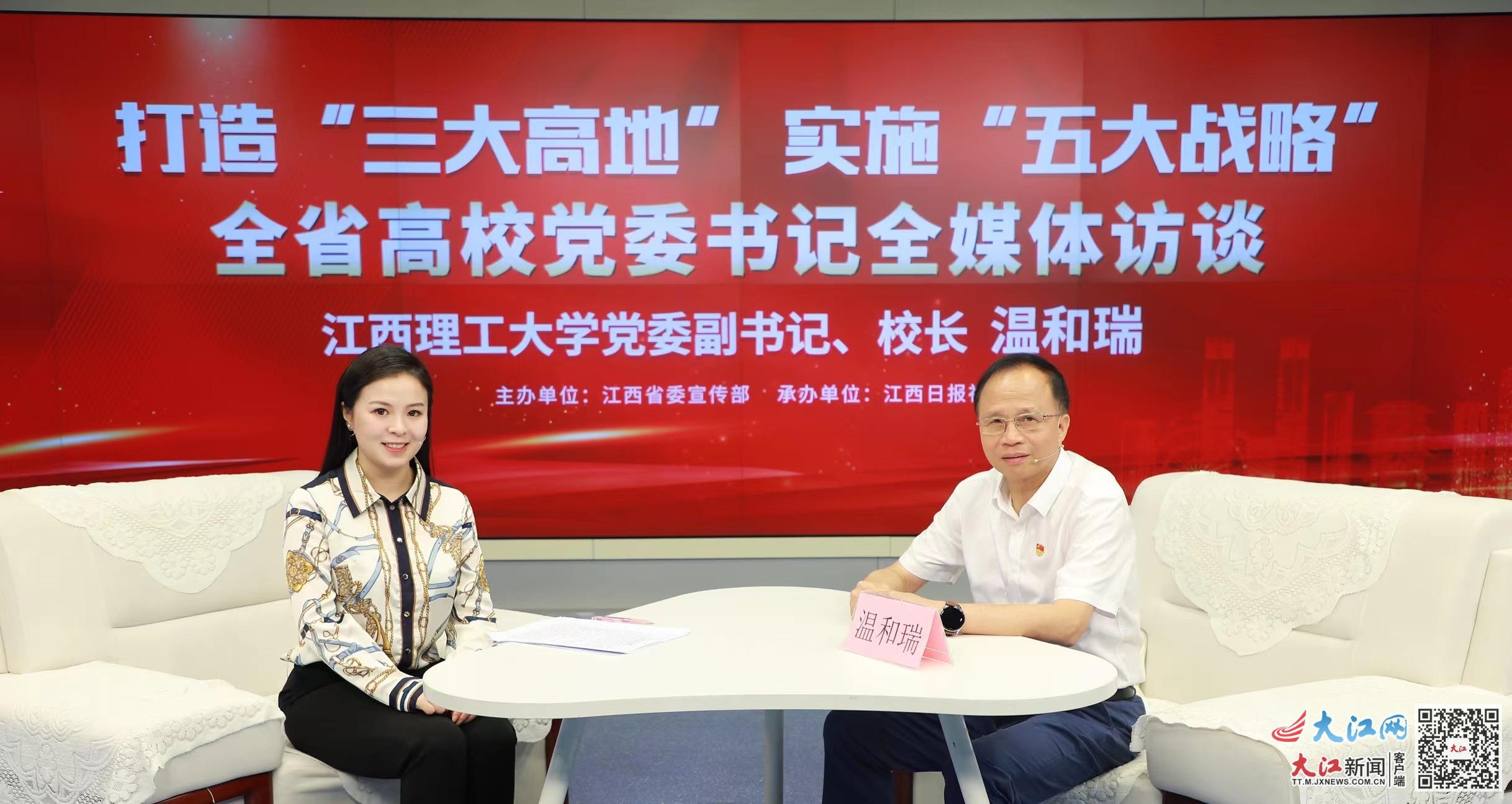 党委副书记、校长温和瑞做客江西日报社大江网演播室,畅聊该校如何培育高水平人才,发挥学科特色和科研优势,赋能江西有色金属、新能源等产业发展。