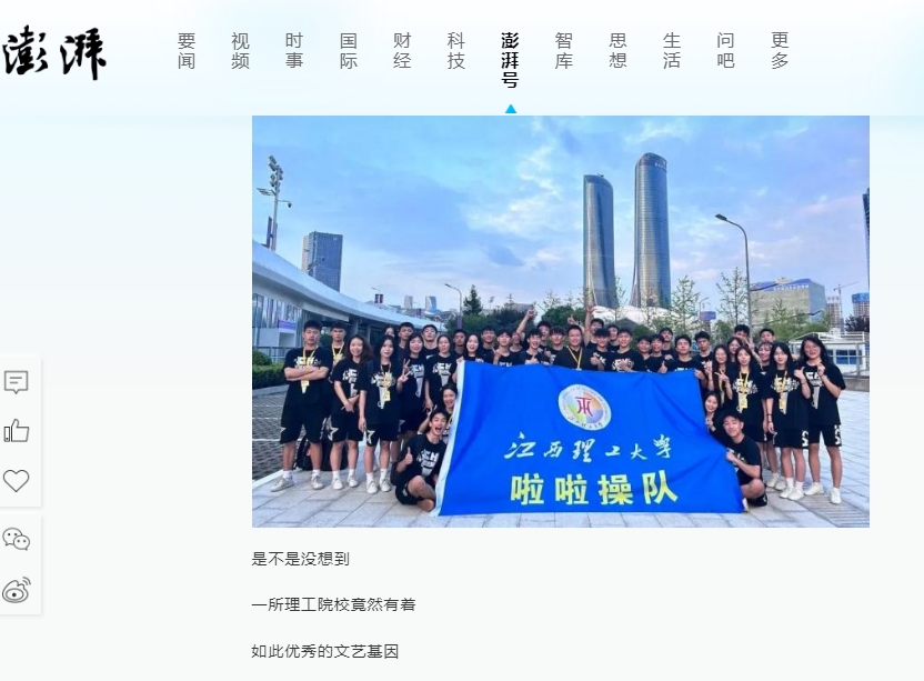 《澎湃新闻》:太帅了!江西这群大学生“跳”上亚运会舞台
