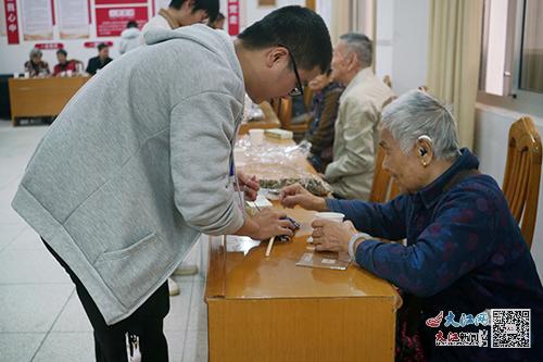 伴随着舒缓的音乐,离退休教职工与志愿者互动开展活动。投壶活动现场,离退休教职工们手持箭柄,全神贯注,一击即中。象棋赛场,离退休教职工们切磋棋艺,其乐融融。学生志愿者们还为离退休教职工送上了精美礼品,开心的笑容在他们脸上洋溢着。