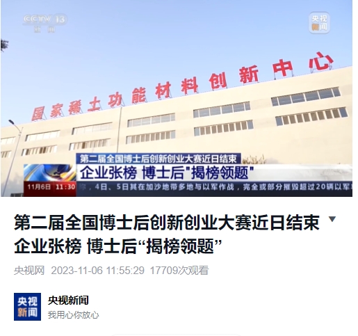 《中央电视台新闻直播间》:第二届全国博士后创新创业大赛近日结束 企业张榜 博士后“揭榜领题”