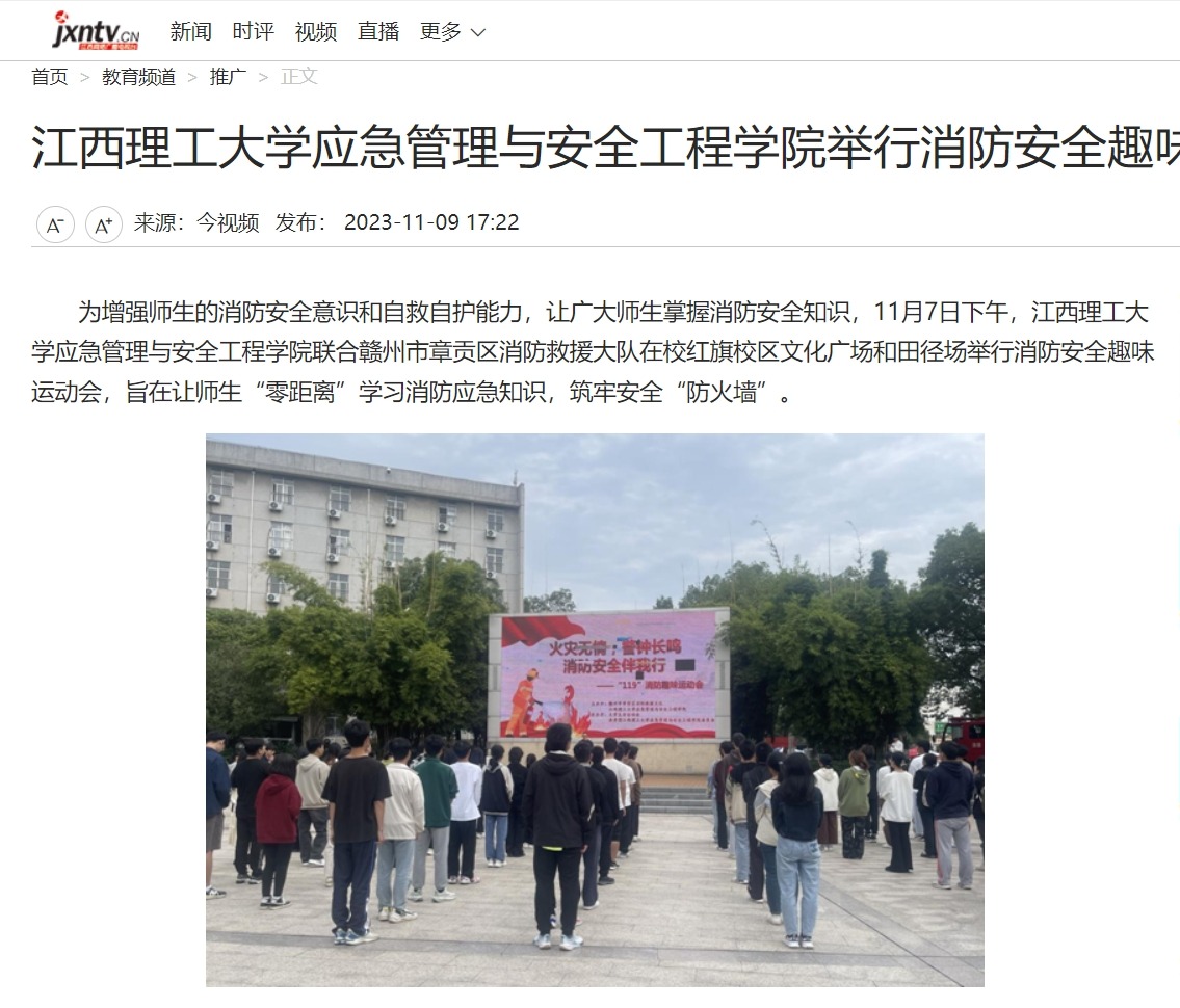 应急管理与安全工程学院联合赣州市章贡区消防救援大队在校红旗校区文化广场和田径场举行消防安全趣味运动会,旨在让师生“零距离”学习消防应急知识,筑牢安全“防火墙”。