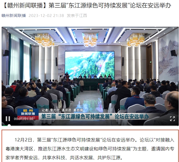 《赣州新闻联播》:第三届“东江源绿色可持续发展”论坛在安远举办