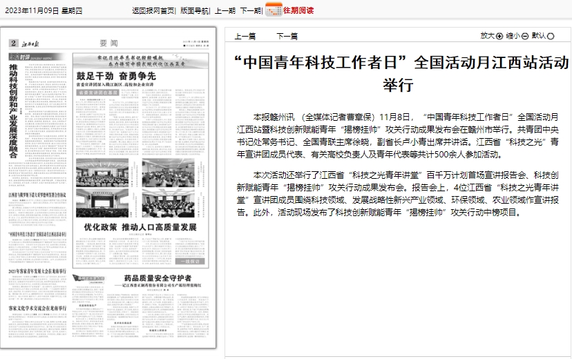 《江西日报》:“中国青年科技工作者日”全国活动月江西站活动举行