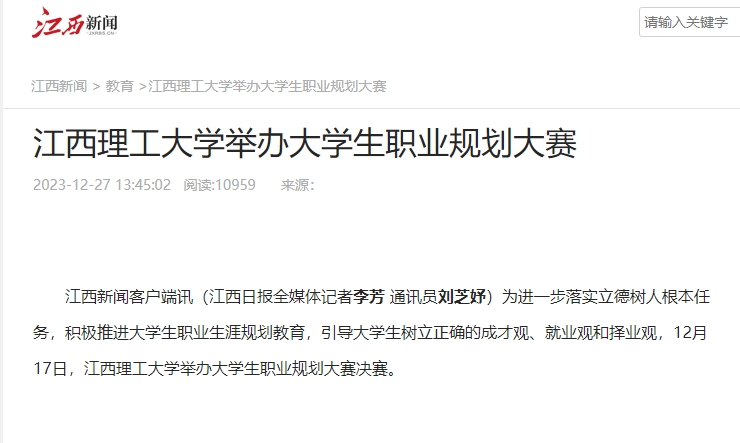 《江西新闻客户端》:六合彩开奖 举办大学生职业规划大赛