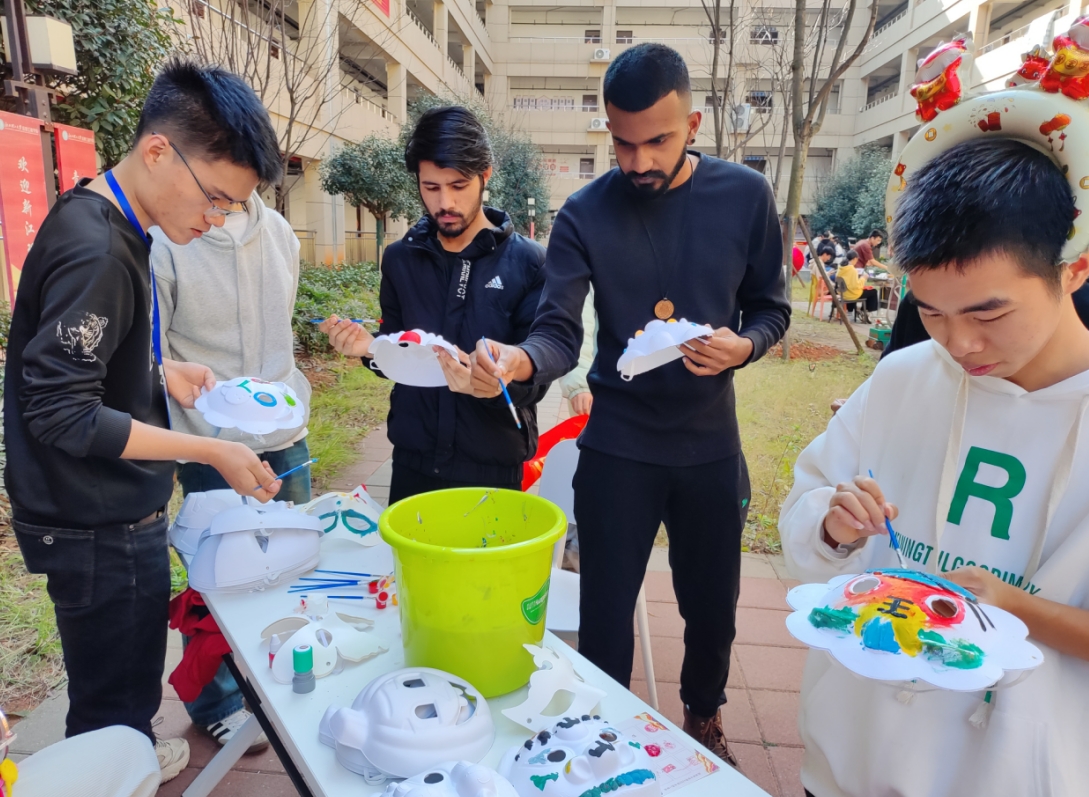 活动设置有中国剪纸、制作灯笼、拓印红包以及糖画等摊位。院子里,江理学子画糖画、拓印红包、设计脸谱……大家都收获满满,信息工程学院的特色打卡奖励文创印章也颇受好评。