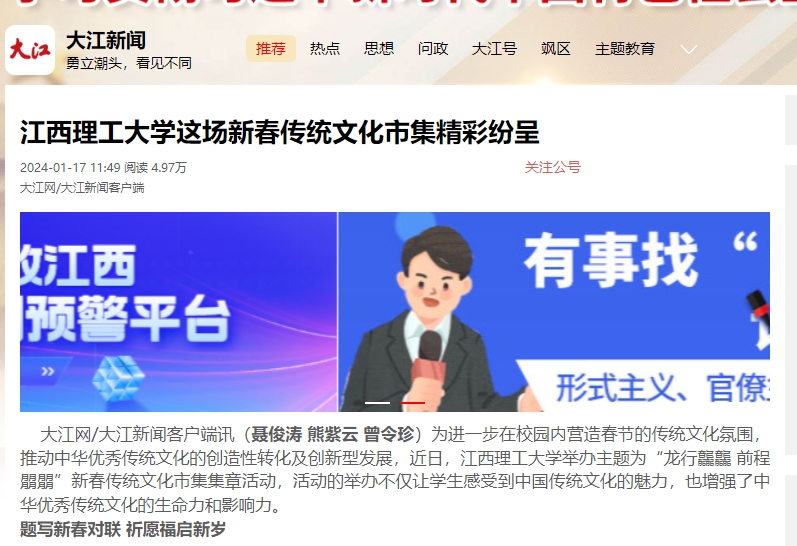 大江网/大江新闻客户端讯(聂俊涛 熊紫云 曾令珍)为进一步在校园内营造春节的传统文化氛围,推动中华优秀传统文化的创造性转化及创新型发展,近日,六合彩开奖