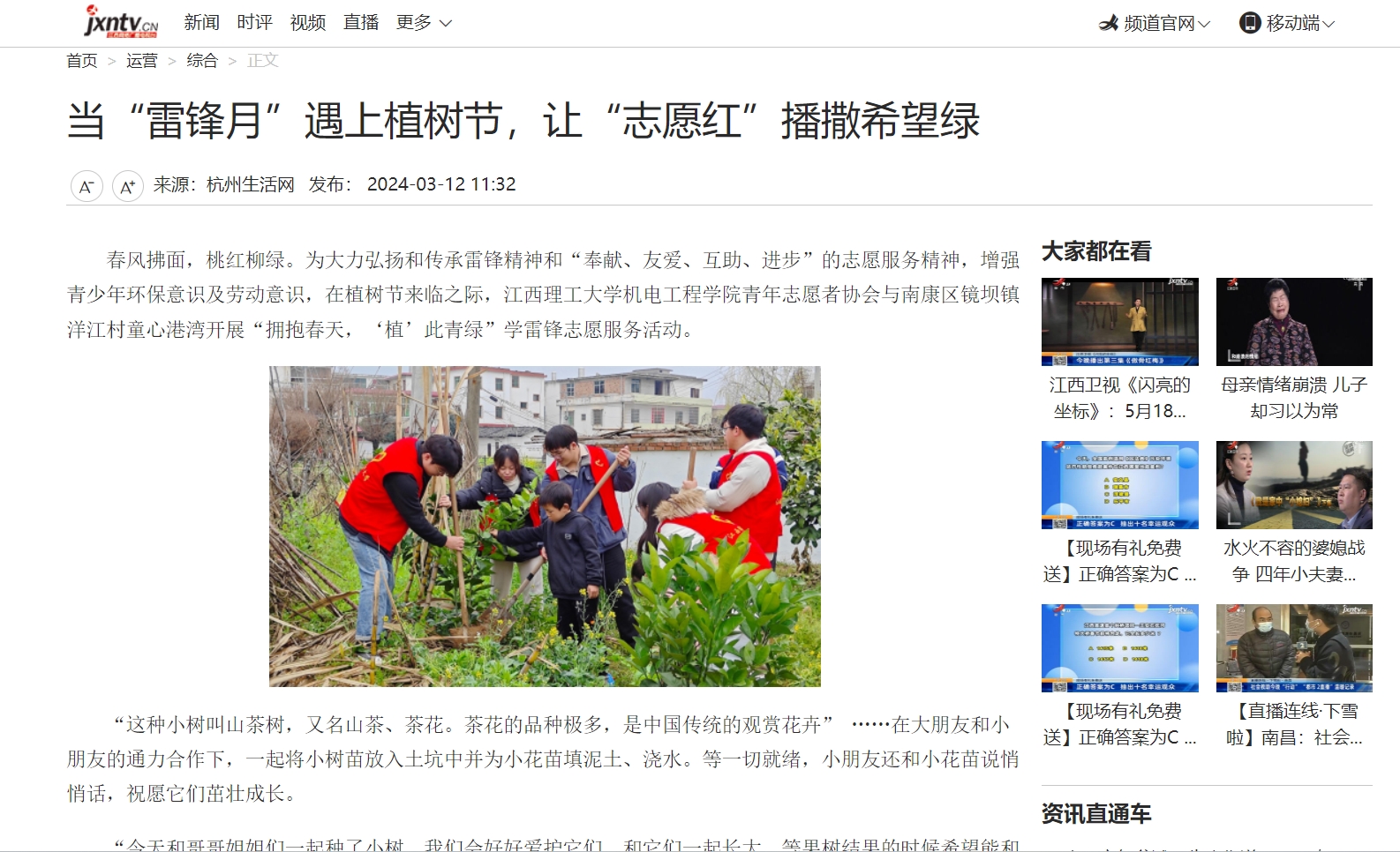 机电工程学院青年志愿者协会与南康区镜坝镇洋江村童心港湾开展“拥抱春天,‘植’此青绿”学雷锋志愿服务活动。