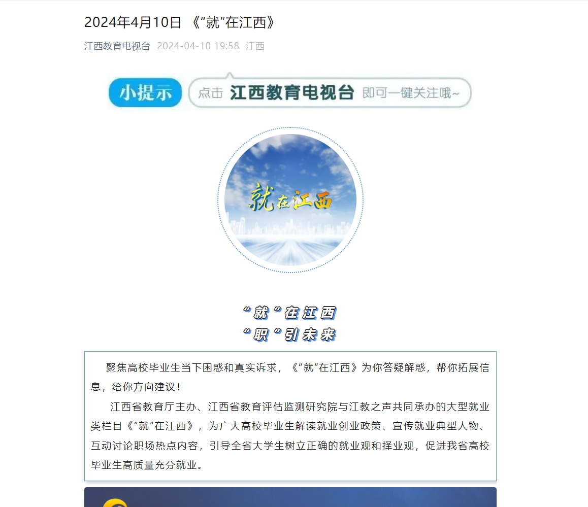 《江西教育电视台》:2024年4月10日《“就”在江西》