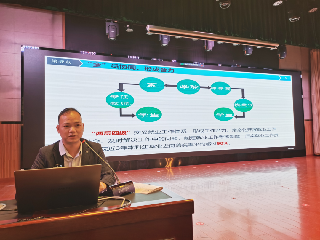 杨毅老师围绕如何做好毕业生就业工作,从全、提、精、分、拓“五字”就业工作法进行了详细介绍。