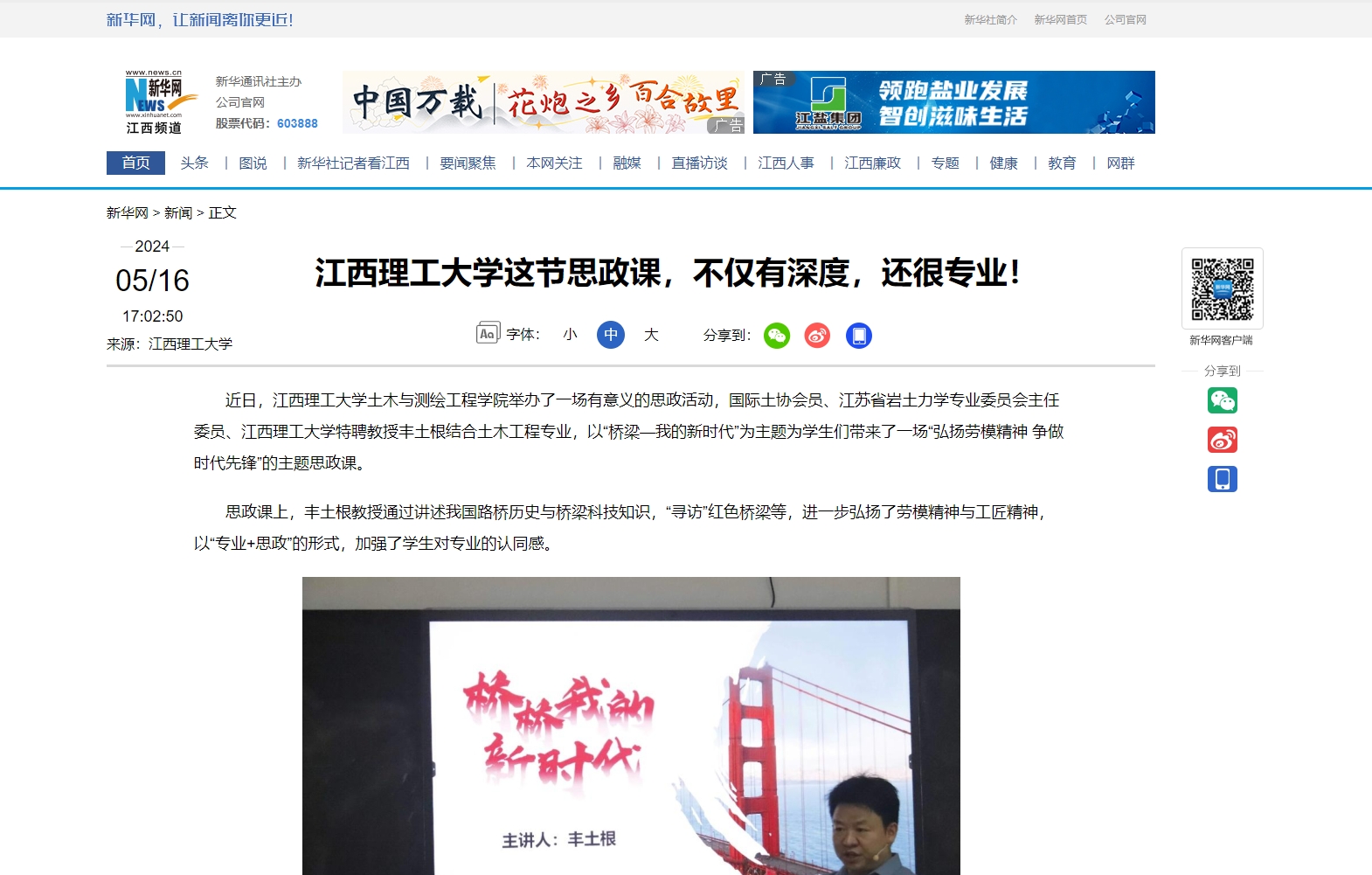此次主题思政课是一次知识的传递,更是一次精神的洗礼。不仅加深了江理学子对中国桥梁发展史的了解,更让学生感受到了红色桥梁的独特魅力和深刻内涵。