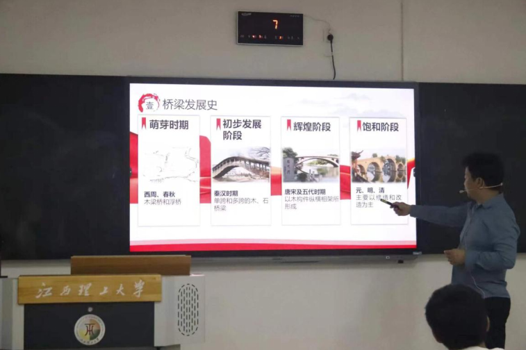 思政课上,丰土根教授通过讲述我国路桥历史与桥梁科技知识,“寻访”红色桥梁等,进一步弘扬了劳模精神与工匠精神,以“专业+思政”的形式,加强了学生对专业的认同感。