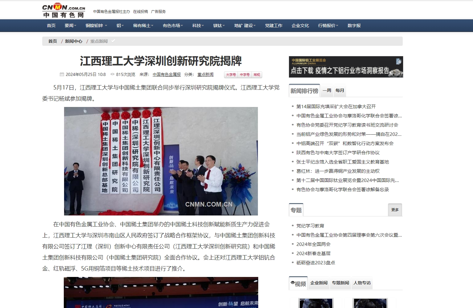 与中国稀土集团联合同步举行深圳研究院揭牌仪式。六合彩开奖