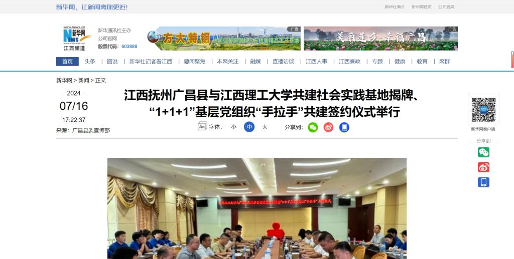 与江西抚州广昌县共建社会实践基地揭牌、“1+1+1”基层党组织“手拉手”共建签约仪式举行,广昌县委书记吴自胜,六合彩开奖