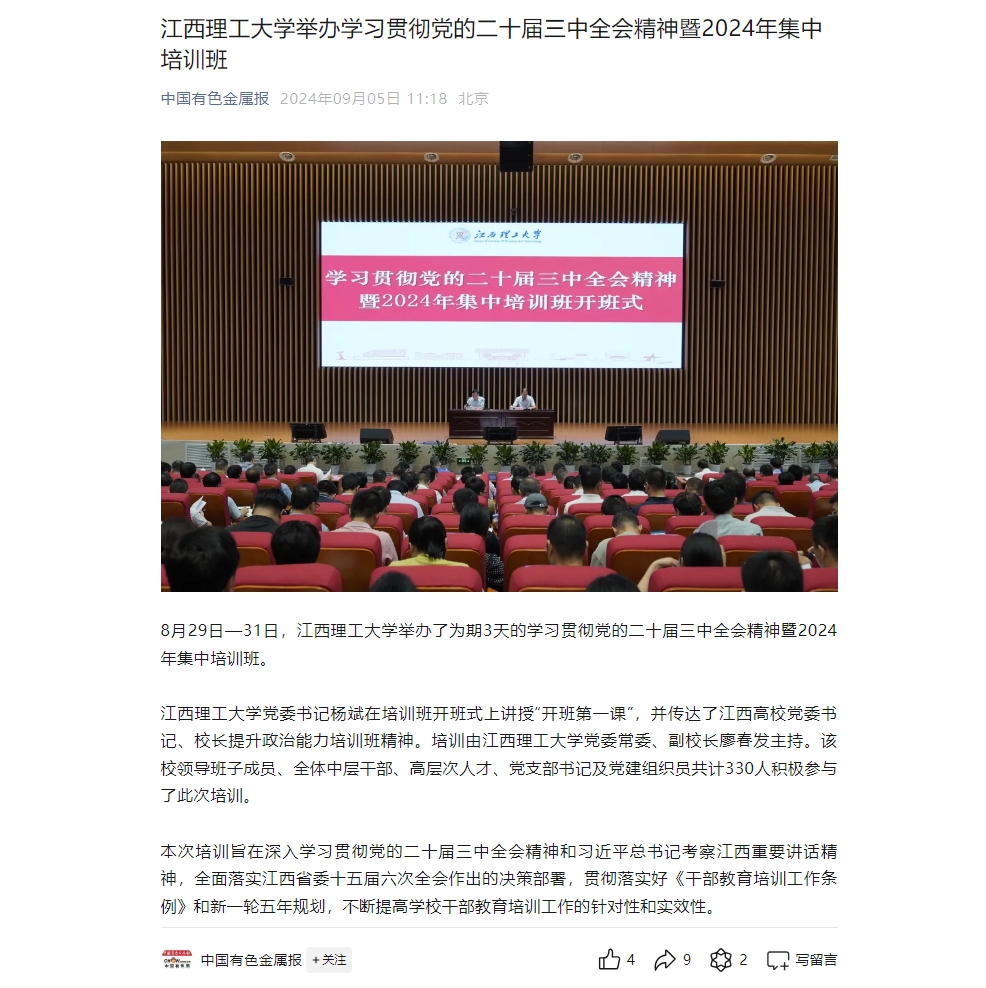 举办了为期3天的学习贯彻党的二十届三中全会精神暨2024年集中培训班。