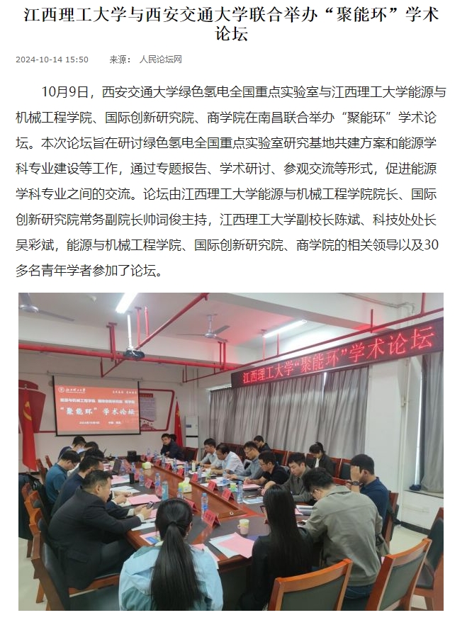 能源与机械工程学院、国际创新研究院、商学院在南昌联合举办“聚能环”学术论坛。本次论坛旨在研讨绿色氢电全国重点实验室研究基地共建方案和能源学科专业建设等工作,通过专题报告、学术研讨、参观交流等形式,促进能源学科专业之间的交流。论坛由六合彩开奖