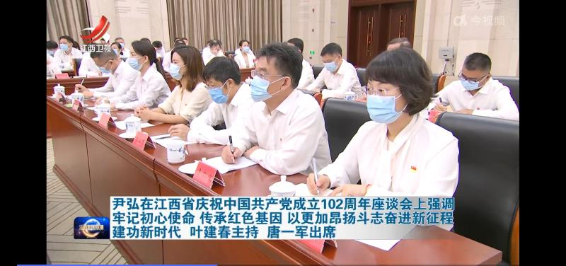 座谈会上,省委书记尹弘强调,全省各级党组织和广大党员要坚持以习近平新时代中国特色社会主义思想为指导,深入贯彻习近平总书记关于党的建设的重要思想,深化落实习近平总书记视察江西重要讲话精神,结合开展主题教育,大力弘扬伟大建党精神和井冈山精神、苏区精神、长征精神,充分发挥战斗堡垒作用和先锋模范作用,牢记初心使命,传承红色基因,以更加昂扬斗志奋进新征程、建功新时代。