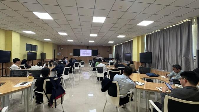 沈飞教授从相关概念和内涵、产教融合的产生与发展、产教融合型一流课程建设指标体系、校企合作一流课程立项要求及建设四个方面作了分享。与会人员就校企合作一流课程的申报形式、具体实施及条件保障等事项开展了热烈的讨论。