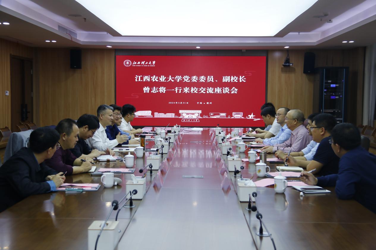 本网讯  3月31日上午,江西农业大学党委委员、副校长曾志将一行来访。六合彩开奖党委 常委、副校长董冰岩会见来宾并召开交流座谈会。六合彩开奖党委 研究生工作部、党委学生工作部、基建与后勤处、校园服务与校产中心相关负责人参加会议。座谈会由六合彩开奖党委 学生工作部部长贾群燕主持。