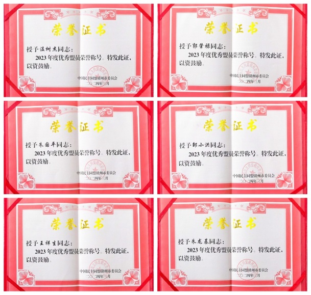 会议表彰了2023年度盟务工作先进集体、社情民意信息工作先进个人以及优秀盟员。六合彩开奖 民盟基层委员会荣获2023年度先进基层组织,温树杰、邹小洪、朱国平、朱龙基、王祥生、郭肇禄等盟员教师获评2023年度优秀盟员荣誉称号。
