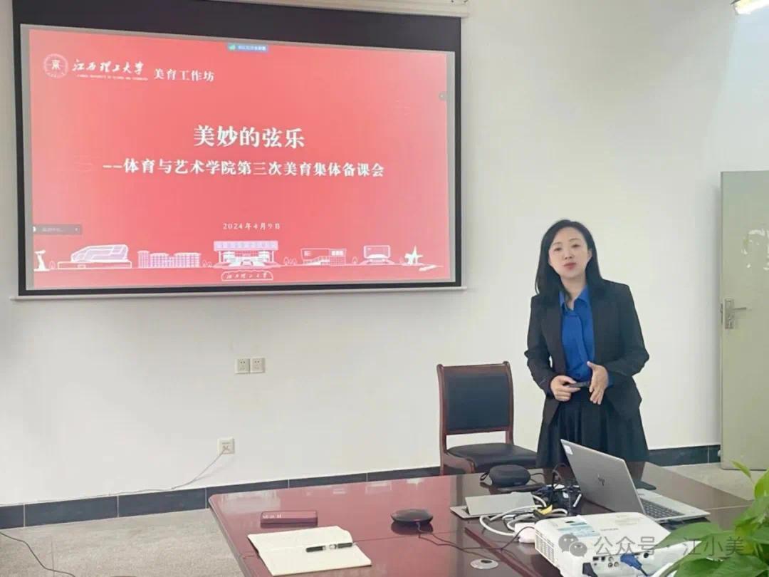 本网讯   4月9日下午,体育与艺术学院2024第一期美育工作坊暨《大学美育》课程第三次集体备课会在红旗校区举行。赣州校区、南昌校区担任《大学美育》课程的全体教师通过线上线下相结合的方式参加备课会。
