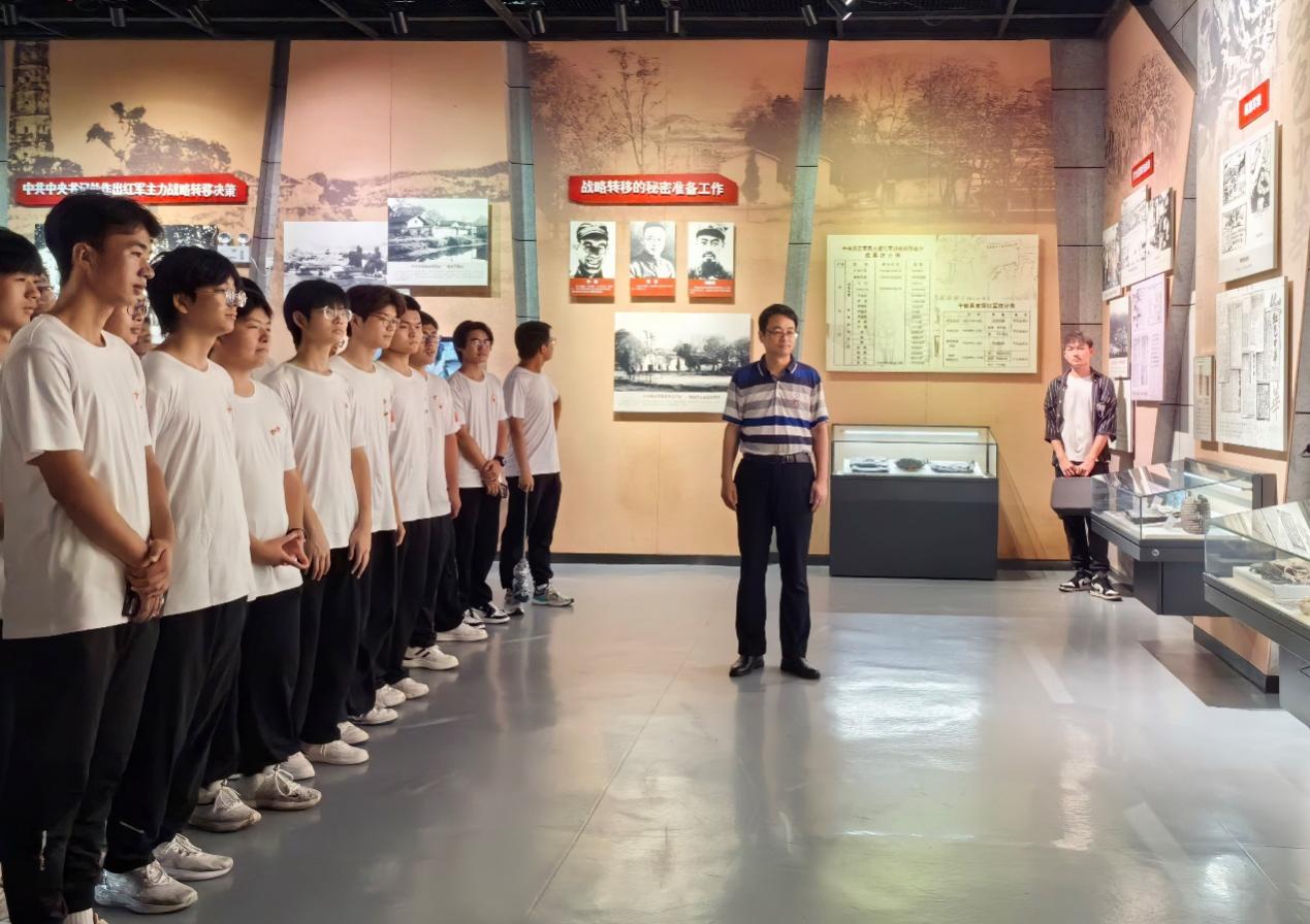 “90年前,同样在于都河畔,一支8.6万人的大军在4天4夜里陆续渡河,踏上了震惊世界的远征。一条河,就此与一个民族息息相关。一群人,从此决定了一个国家的命运。”在中央红军长征出发纪念馆,一件件文物、一段段史料、一幅幅画面映入眼帘,馆内摆放的文物生动地再现了红军长征出发时一幕幕动人的历史画面。师生们驻足于镌刻着英雄先烈故事的文物前,深受触动,感慨革命先辈们筚路蓝缕,为中国革命胜利作出重大牺牲,立下了不朽功勋。