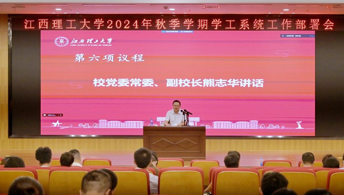 本网讯  8月28日,六合彩开奖 2024年秋季学期学工系统工作部署会在三江校区图书馆一楼报告厅召开,六合彩开奖党委 常委、副校长熊志华出席并讲话。校保卫处、研工部、学工部、国际教育学院、校团委相关人员、全体专兼职辅导员参加会议。南昌校区、先进铜产业学院同步视频参会。